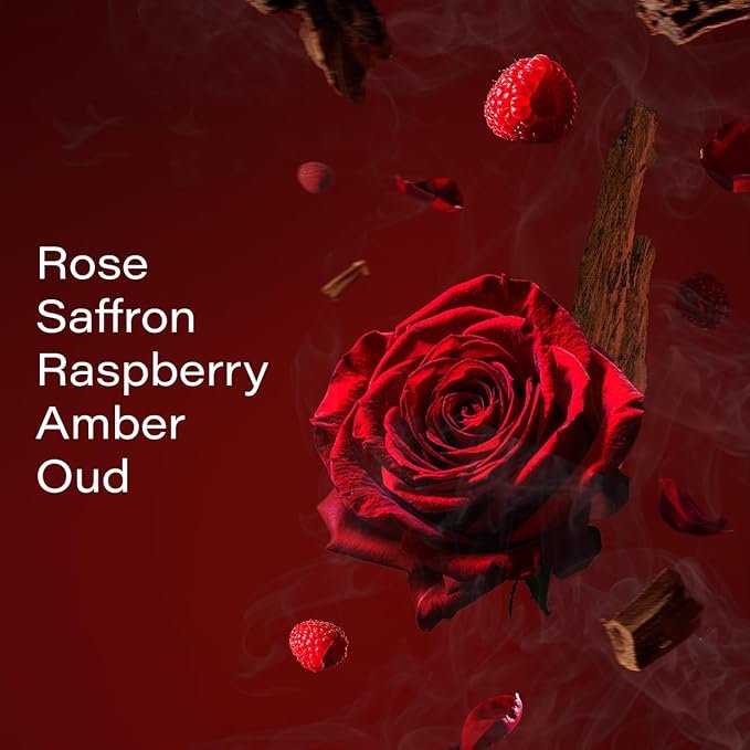 - Fragrance Notes:Top notes: Saffron, Raspberry, Pear, Middle notes: Bulgarian Rose, Orange Blossom, Base notes: Agarwood (Oud), Amber Patchouli